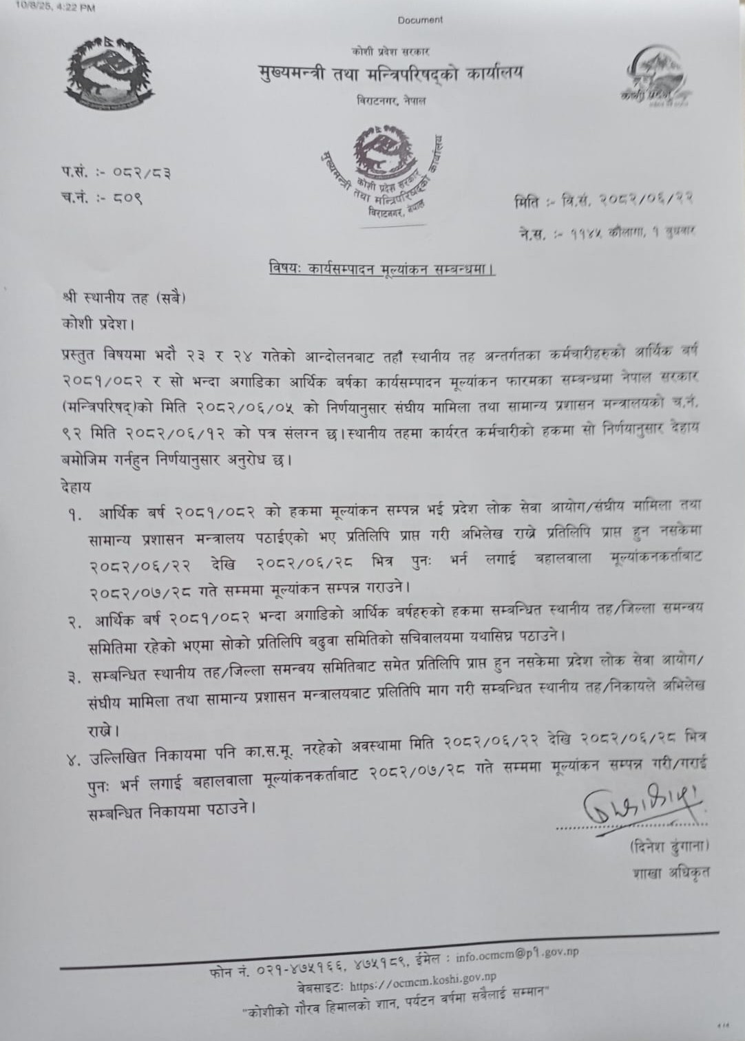 परिपत्रः कार्यसम्पादन मूल्यांकन सम्बन्धमा (श्री स्थानीय तह-सबै)